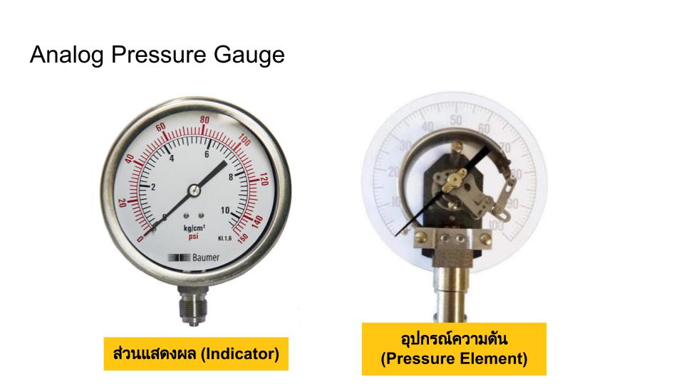 เป็นหน้าปัดที่มีสเกลของค่าความดัน พร้อมเข็มชี้เพื่อแสดงค่าที่วัดได้